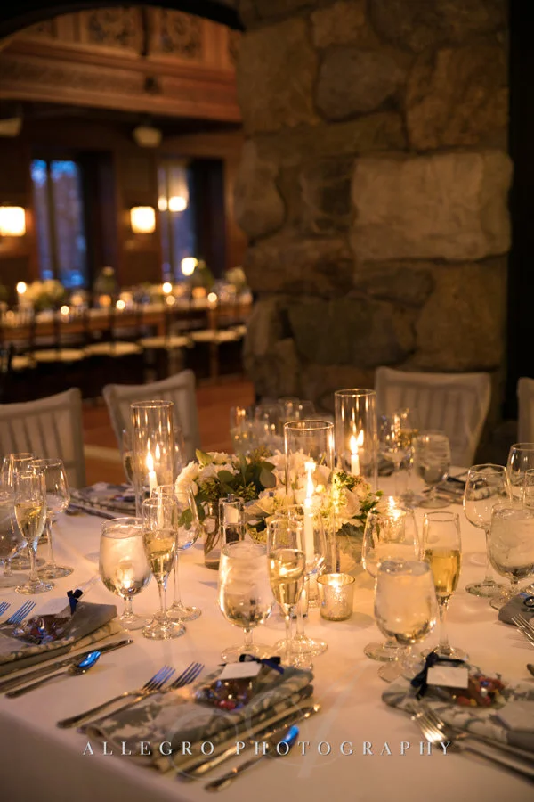 Luckily, Lindsey is a planner herself (and fun fact—a former intern turned close friend of mine!) who knew exactly which details she wanted to incorporate. Think a color palette of dusty blue, grey, and blush + ivory tones along with soft, romantic design elements that carried from the ceremony to reception. Willowdale Estate was a dream location for their vision thanks to its stately character and historic charm. Plus, the cozy fireplaces set throughout the mansion brought even more wintertime elegance to the scene.